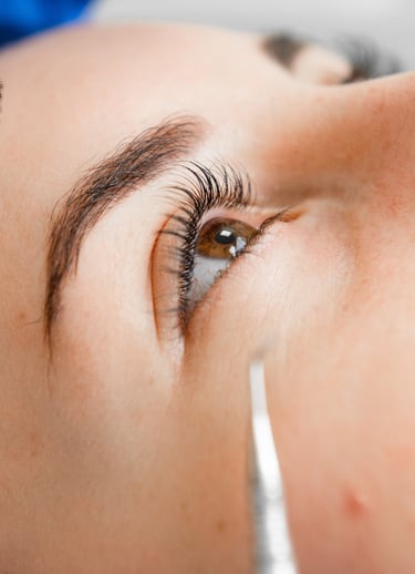 Mettez en valeur votre regard grâce aux prestations de rehaussement, teinture ou extension de cils pour un effet naturel et intense.